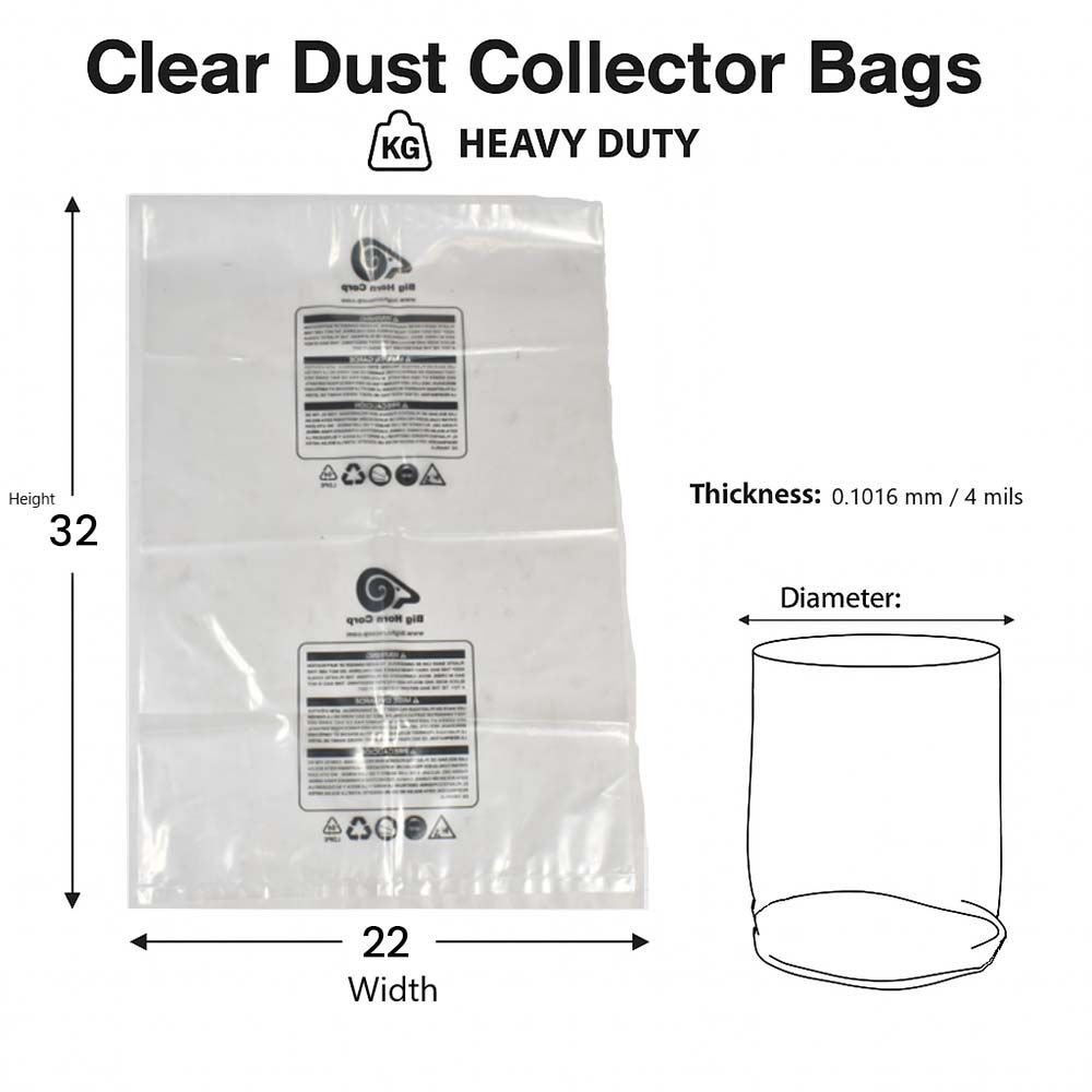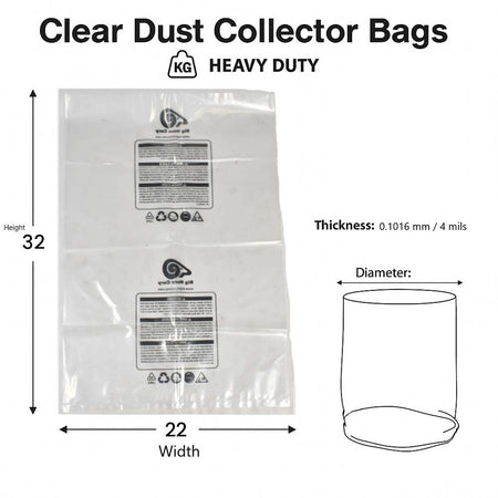 Big Horn Clear Plastic Dust Collection Bags offer an economical, disposable solution for debris collection. The clear design lets you easily monitor capacity. Each order includes five single-use bags compatible with various 16.5” diameter dust collectors, including certain models from Powermatic and Delta.