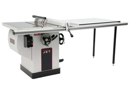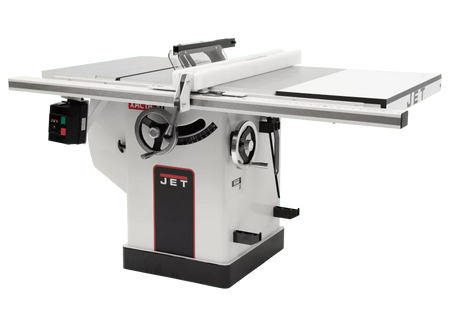 If you've ever wondered about what a table saw can really do, look no further. Introducing the JET® 10" Deluxe XACTA® saw. The quick release riving knife and integrated arbor lock keeps the operator safe and more efficient. The Deluxe XACTA® saw offers an upgraded Poly-V belt drive system for smooth operation and optimal power transfer, a fully shrouded blade for highly efficient dust collection. The 26" x 30" wings and deeper table gives you even more cast iron to work on. Also includes an on-board fence and miter gauge storage.
