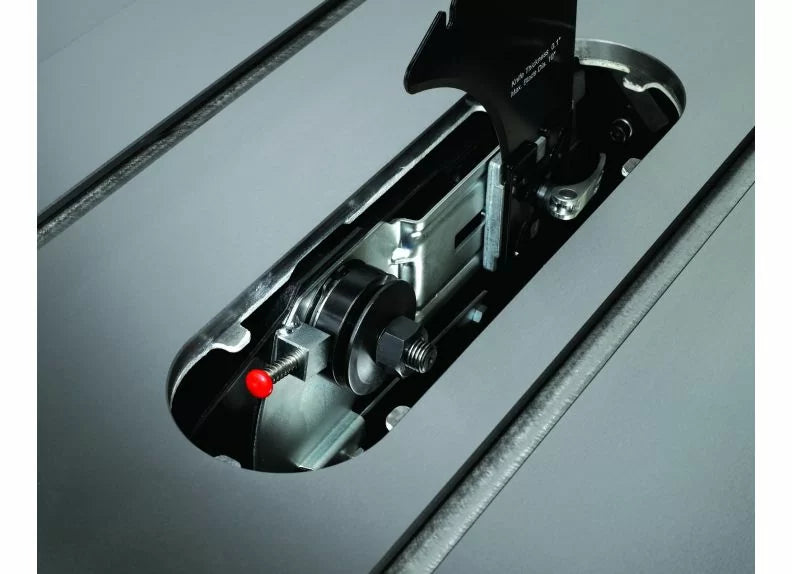 • Precision ground high luster cast iron table tops with front edge bevel for hassle-free workpiece positioning