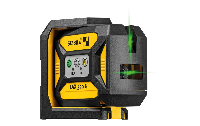 Discover the STABILA LAX 320 G, the compact cross line laser with plumb dots. With innovative GREENBEAM technology, this professional laser delivers long, razor-sharp lines for precision work at distances of up to 100 ft / 30 m. Manual mode enables flexible inclines, while the accessory set supports a range of applications. The screw-in housing optimally protects the laser optics in park position. Perfect for interior construction and everyone who relies on precision laser lines in their daily work. STABILA – work efficiently with perfect results!